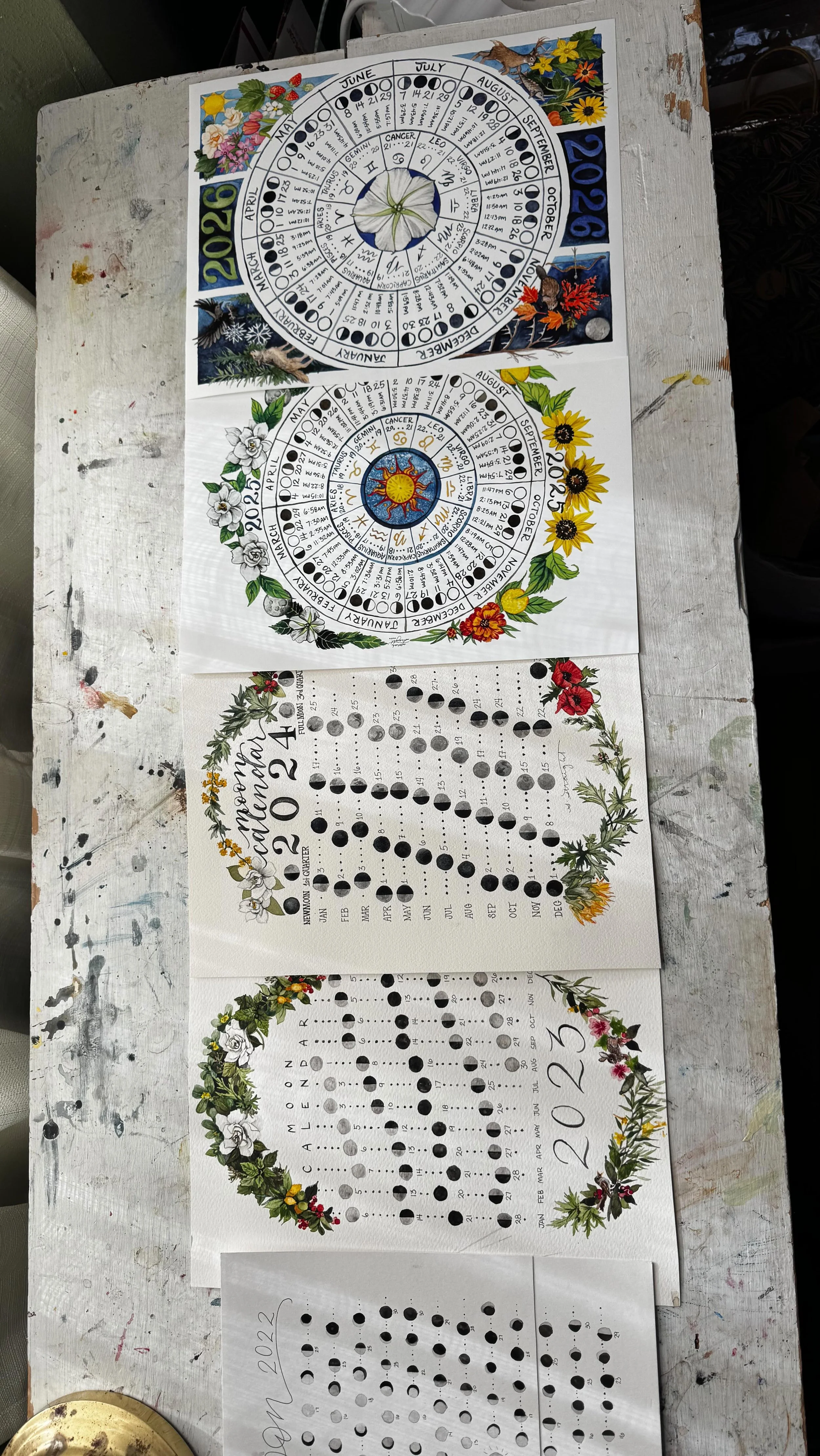 Follow the phases of the moon through all of 2026 with this hand-painted watercolor moon calendar. 2 sizes available- 8×10in & 11×14in.