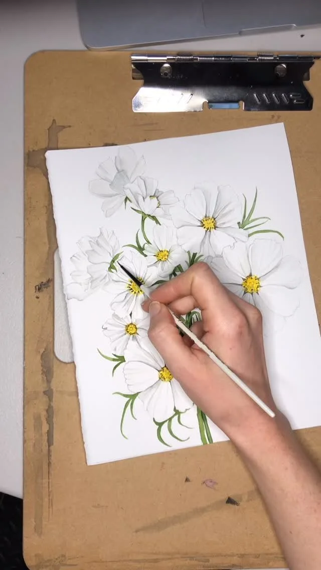 The full moon in the month of May is known as the Flower Moon. This name for the moon celebrates all the blossoming flowers of spring. In this painting, peony, magnolia, daffodil, tulip, rose, lilac, & cherry blossom flowers surround the moon.